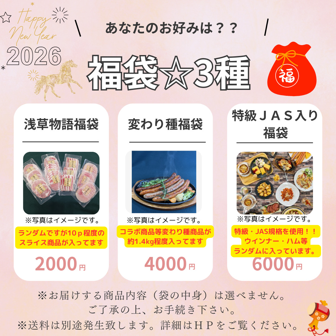 - 特級・JAS規格がメインで入っている福袋です♪ウインナー・ベーコン・ハムがお楽しみいただける弊社イチオシの商品です!!